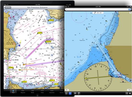 Then again, some of my principles are subject to change! And some of the boating apps rebuilt or built for the iPad -- like iNavX and Navimatics seen below, InteliSea, Active Captain, etc -- are going to fly, I think. Everyone at the table where we were trying them agreed that the iPad is fast, regardless of which app they were in. At any rate, let's discuss, and if anyone finds out more about iPad Bluetooth abilities, please let me know. Also, my column on the possibilities of iPads aboard is now up at Yachting.