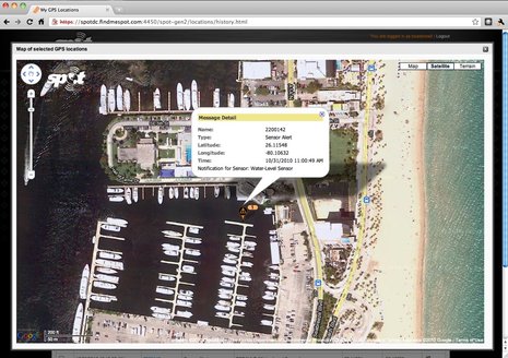 As demonstrated on a large yacht in Lauderdale -- with lots of iPads for the web and email portion of the demos -- the Hug can also monitor a boat's battery bank and/or up to four inputs like intrusion and high water alarms. (They had the latter set up in the on-deck hot tub!) These are handled like regular Spot messages, in that you set them up on your FindMeSpot account web page where you can also designate a list of up to ten email or sms addresses to receive alerts, a different list for each sensor if you wish. Each alert event (no matter how many messages it involves) will cost you$1.50, which will encourage good sensors installs, but you'll also be able to pre-purchase bundles of sensor alerts at lower cost, like $50 for 50 events...