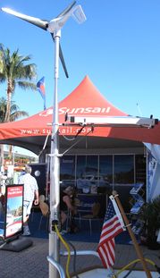 I was glad to see the Solar Stik back at the Miami Show. I'd been impressed with the engineering -- especially that sweet taper -- when it was first introduced years ago, and it was nice to learn how many markets the company has found since. I also got a demo (that's why the photo shows one of the two panels is completely removed, which took seconds), and thus I'm pretty sure that it would be easy to do the turning and tilting required to get the maximum power out the normal panel pair. I may romanticize the notion of putting one's rum swizzel down every few hours to tune the solar array while laying in some tropical anchorage, but I don't think there's any denying that solar amps are directly related to angle of sunlight (15 degrees in any direction is the key fall-off point, according to the Stik guy). But would a power tower like this make sense on an amp-thirsty cruiser like Gizmo?