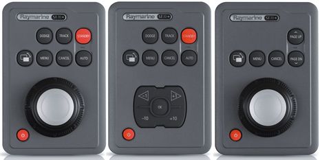 The Raymarine ST70 Plus pictured above is similar to the ST70 but with a larger screen, wired remote control (picture below), and with a capability for multiple displays to be linked together to work in concert so that features such as brightness and display modes affect all displays together with few clicks of the remote.