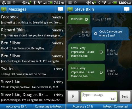 But does inReach perform flawlessly? I'm not sure. I do know I've had a few Bluetooth connect issues even since I got a production unit (and I admire any company willing to tech support Android Bluetooth issues). And I've also had a couple of instances where the inReach froze up and could only be shut down by removing the Lithium AA batteries. I'm talking to customer support and also watching DeLorme's very active forums. But I've also witnessed how far the company has come with hard- and software in a few months and trust they will keep tweaking toward perfection. Then again I've also seen how differently -- sometimes positively, sometime not -- BriarTek designed Cerberus around the same Iridium module. Overall I still think that this is a terrific new communications technology. Tomorrow we'll look at the Internet side of inReach -- full featured to be sure -- and I'm hoping some of you will help with further testing.