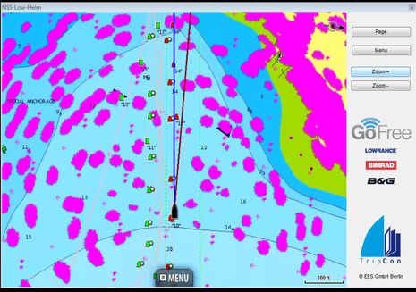 But what about the upper tiers of Navico GoFree, about which very little was promised? This weekend I had the pleasure of trying TripCon Lite, the free trial version of an unusual logbook PC program being developed in Germany. It took just a few minutes to install it and select Gizmo's GoFree WiFi as the data source. As illustrated above and below, TripCon not only uses the data streaming seen in other apps, but also NSS 8 screen streaming and control. I'm hoping to test the full version, but it sure looks like I'll be able to record the video screen or attach screenshots to an automated or manual log entry. Like I said, the GoFree possibilities seem unlimited.