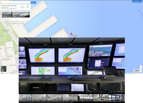 Note, too, that you can save a link in Google Maps that will take anyone to the exact "See Inside" photo view you select. So, say, a (goo.gl shortened) link like http://goo.gl/kccwz0 can lead right to Falkor's impressive and possibly critical coffee machines. Please show us what you find particularly interesting on this very tricked-out research vessel, and extra point if you can find the purported "staff Easter eggs" somewhere in all the imagery. (Incidentally, a big thanks to occasional Panbo commenter Kurt Schwehr, who is now a member of the Google Ocean team.)