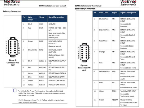 However, the Veethree EGM has two significant limitations. If you look closely at the Deutsch connector diagrams above, you'll see that it has 7 analog resistance-based inputs, but they are set up for specific sensors. In Gizmo's case, I can monitor and gateway 3 important engine values but not transmission oil pressure (like I can on the EMU-1). Plus, I can only monitor one of the boat's two fuel tanks, and 3 of the EGM's inputs would go unused when they could be wired to other tank senders and/or temp sensors on, say, Gizmo's shaft log and raw water pump. Veethree certainly has the chops to make these inputs more flexible, but that would also make the interface more complex and might add to the technical support burden. But then again, Sales Engineer Eric Mueller -- who I met at the Miami Show -- emphasized that Veethree does respond to customer input.