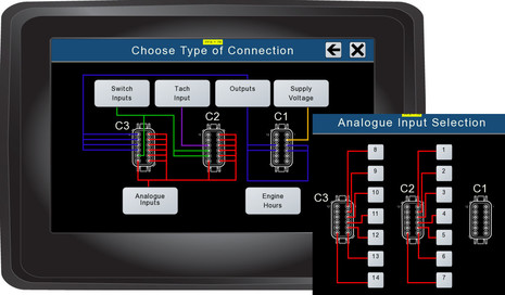 The Veethree EGM 800 will be based on the VeeCan 800 OEM product, like the EGM is based on the VeeCan 320, and hence the screen is 800 x 400 pixels. If you download the VeeCan 800 datasheet, you'll learn that this gadget is also touch screen and has three 12-way Deutsch connectors on the back. So, in addition to NMEA 2000, J1939, RS232 (0183), tachometer and Ethernet ports, the EGM 800 will have 14 analog inputs, 3 digital/flow sensor inputs, and 8 switched outputs now called Relay/Solenoid because it can conceivably go beyond display and gateway duties to controlling other devices.