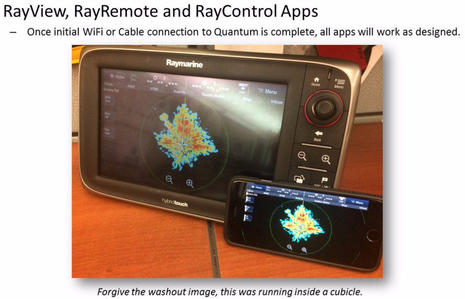 And, yes, a LightHouse MFD connected to Quantum WiFi can still be an access point for various Ray apps, as Jim illustrated below. "But isn't that a terrible radar image," I said before noticing the apology line. Heck, that's Quantum radar imaging everything that's within the four walls of Raymarine's U.S. headquarters in New Hampshire. The company is clearly excited about their new radar, and so am I. It looks like a great new option for those who have or are about to purchase Ray navigation systems, especially sailors, and it's good news to finally have competition in solid-state radar, with Quantum possibly just the first we see in 2016.