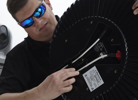 Meanwhile, Quantum mechanics (ha!) are easier to judge. That's McGowan above showing off the radome's sculpted bottom design -- "We realized that the bottom was what many radar owners see the most" -- and clever install details. For instance, the cable retainer he's touching is spring loaded so the installer doesn't have to use little fasteners while precariously up a mast.