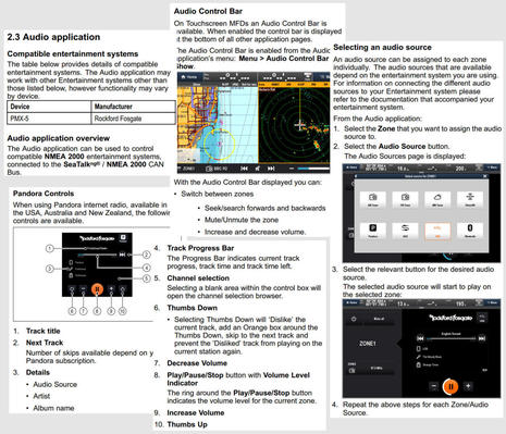 The Audio app does looks quite complete -- as seen in part by the snips from the R17 New Features PDF above -- and it includes the PMX-5's intriguing ability to use two different audio sources with different speakers zones on your boat. So Raymarine seems well prepared to work new N2K stereos announced by JL Audio and most recently by Prospec Electronics.