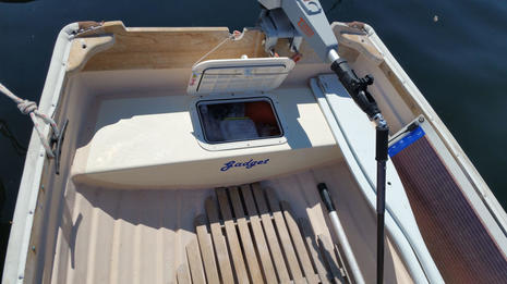 Yes, I cut large holes into the beautifully-built Fatty Knees 9 tender dubbed Gadget and permanently removed perfectly dry flotation, but please don't call me nuts until you understand the whole scheme. The formerly waterproof aft and forward seats now contain a total of five PFDs with room for small gear plus an almost completely invisible but powerful bilge pump system.
