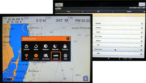 Now let's look at the new Si-Tex NavStar multifunction display series, which are nicely detailed in this Miami booth video. As Si-Tex VP Allen Schneider makes clear in his demo, this MFD is running Android with full touchscreen and browser capability as well as WiFi and Bluetooth. So while there's Ethernet, NMEA 2000 and 0183, and dual-range radar and multiple sonar sources are planned, the NavStar can also work with a Bluetooth keyboard and/or integrate fully with the existing SkyMate system.